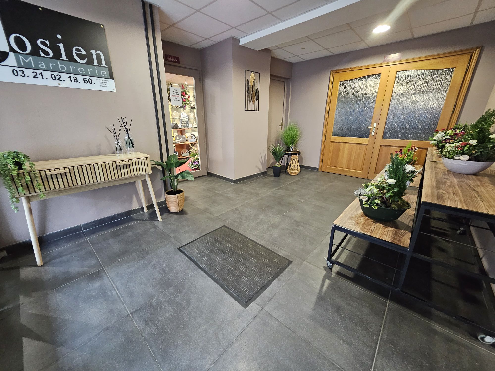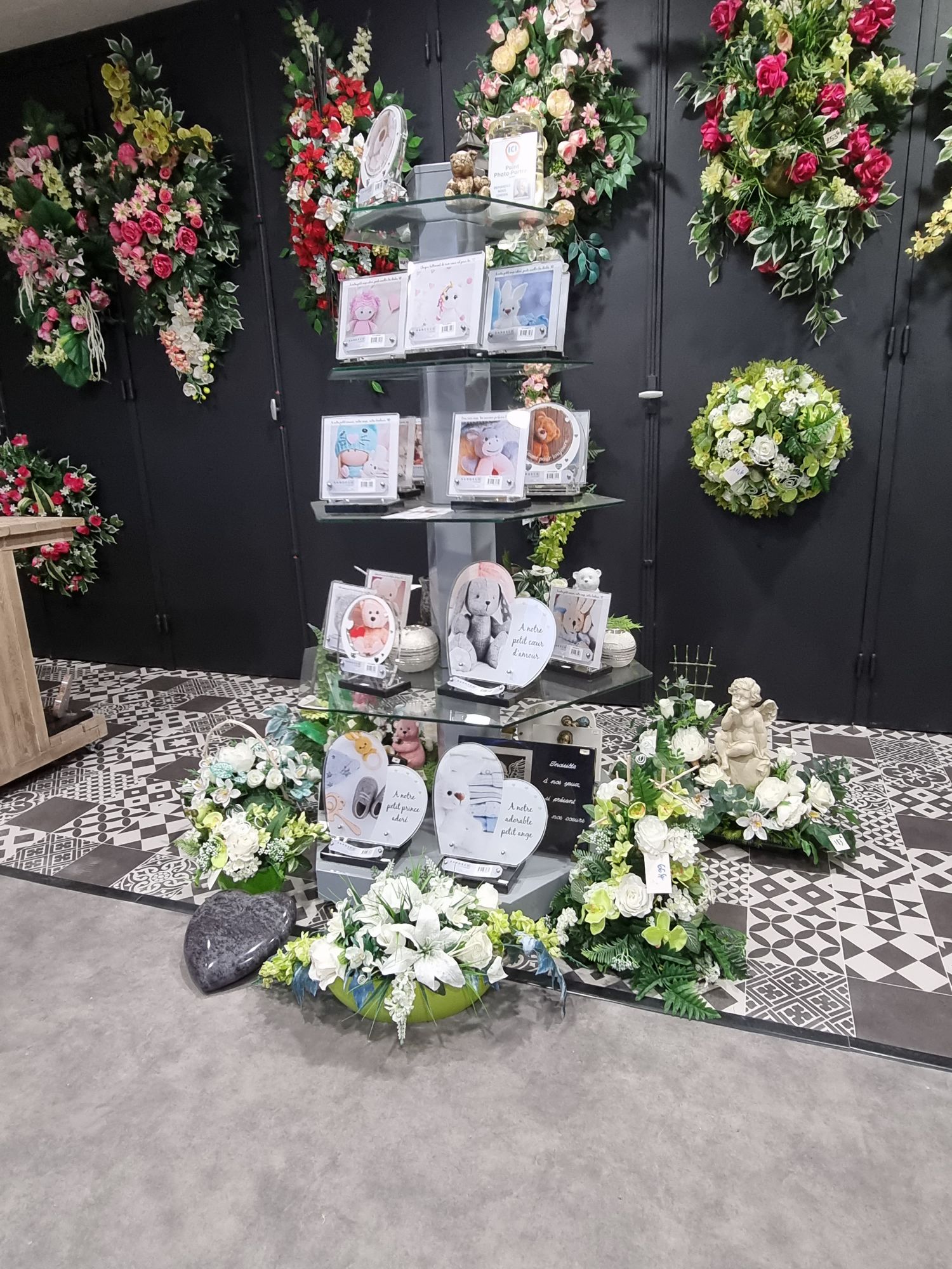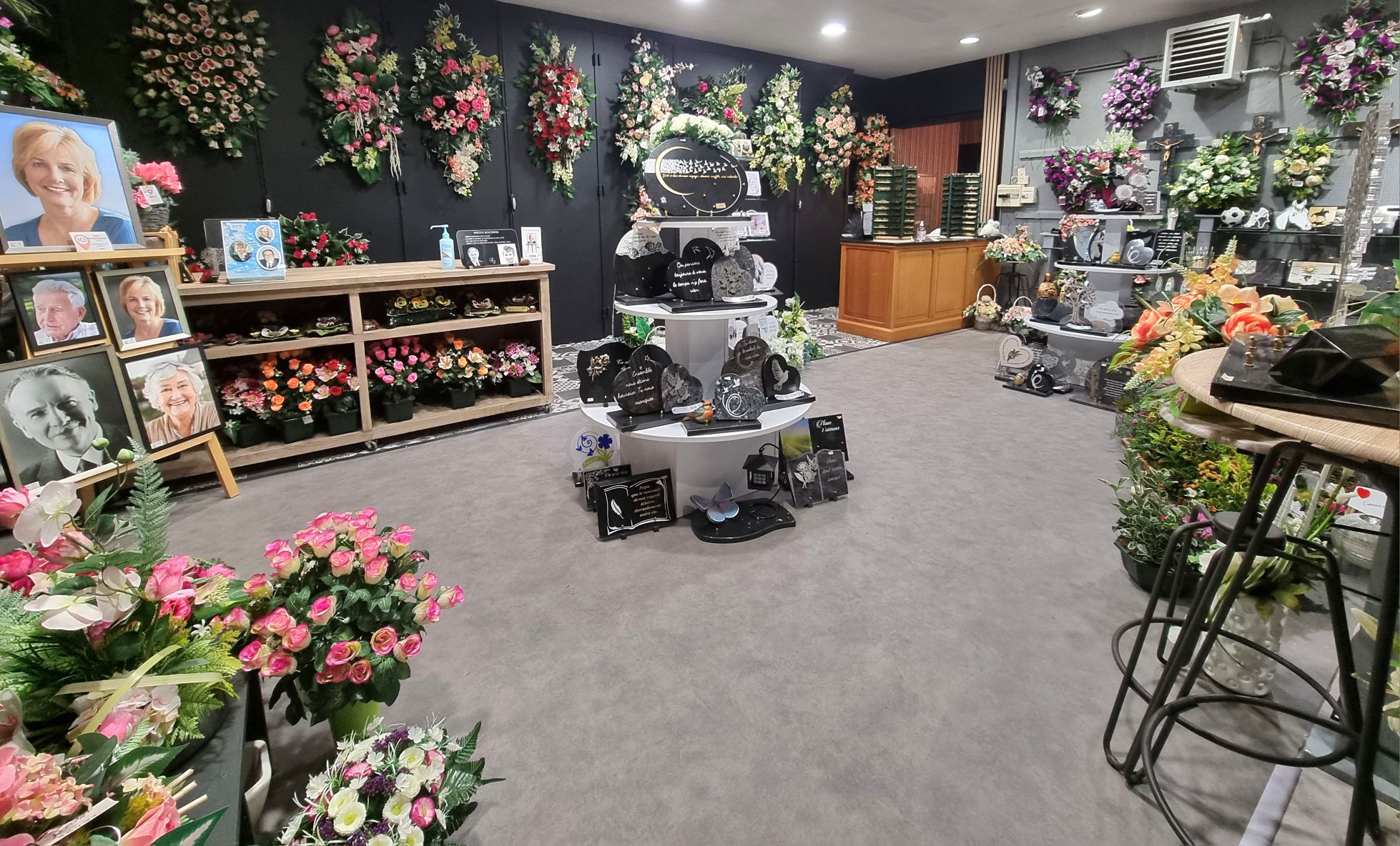 Notre magasin situé à côté du salon funéraire vous propose différents articles funéraires (plaques, fleurs artificielles et naturelles, vases, jardinières, …).