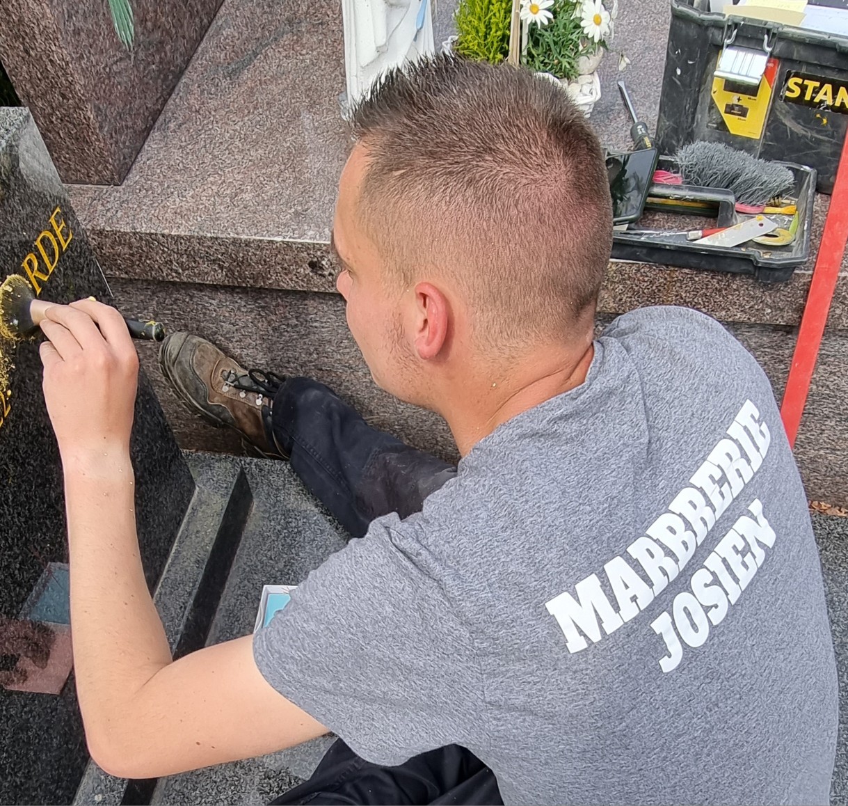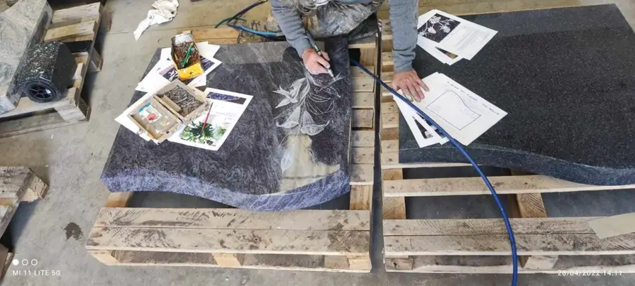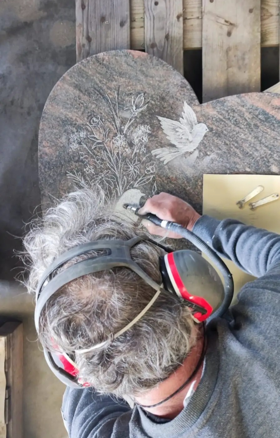 En 2015, nous avons créé notre propre marbrerie afin de ne plus dépendre de prestataires externes et de pouvoir accompagner nos familles du début à la fin, avec la qualité et la réactivité qu’elles méritent. Située au centre d’Isbergues (Berguette), notre marbrerie propose une très grande exposition de monuments funéraires, avec un large stock de granits d’importation et de granits français, ainsi que des caveaux disponibles. Nous assurons la vente et la pose de tous nos monuments et caveaux, avec garantie décennale, ainsi que tous travaux de marbrerie et de gravure. Nous travaillons en plus avec un artiste-graveur réalisant à la main des dessins personnalisés, pour offrir un hommage unique et soigné. Nous attachons un soin particulier à cette personnalisation, afin de répondre au mieux aux attentes des familles.