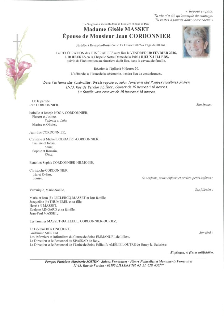 Madame Gisèle CORDONNIER Née MASSET (Rieux-Lillers)