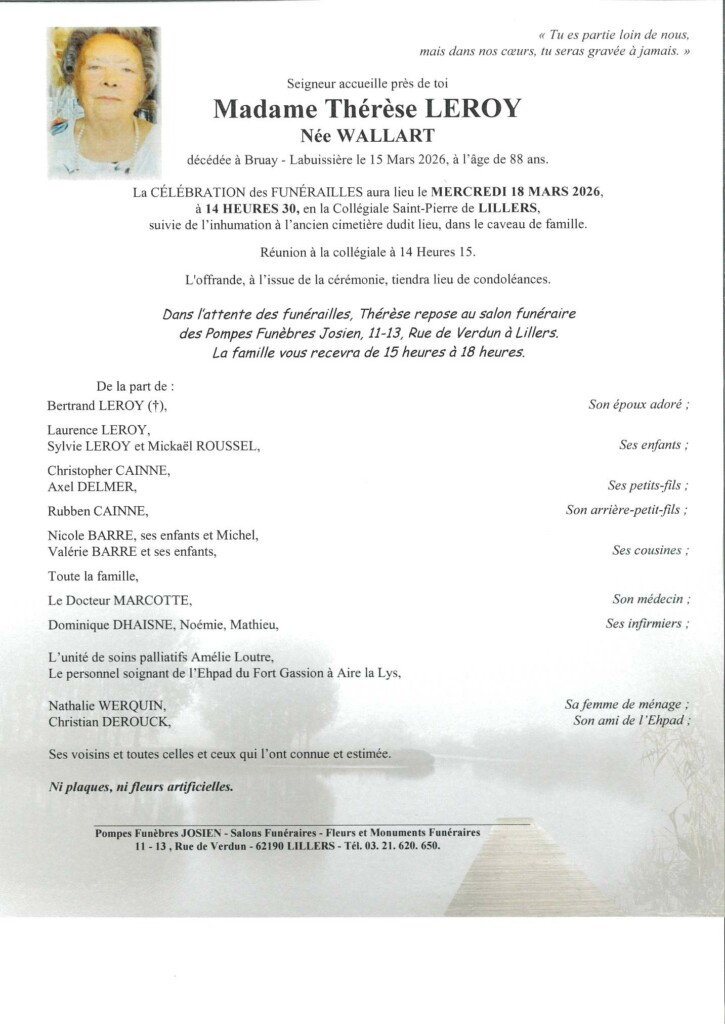 Madame Thérèse LEROY Née WALLART (Lillers)