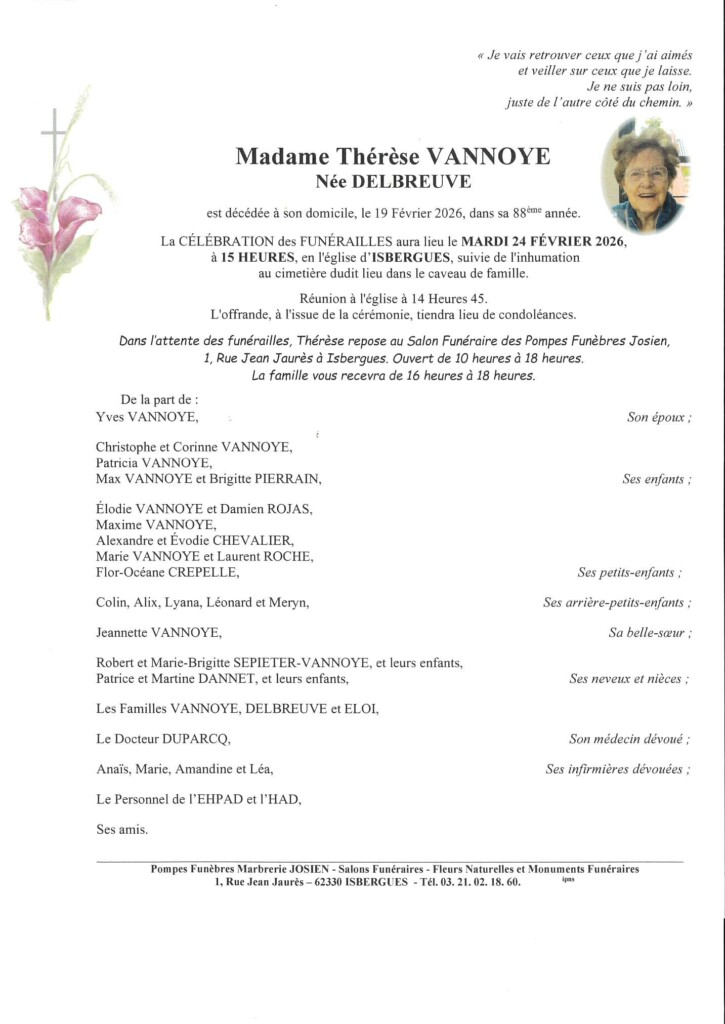 Madame Thérèse VANNOYE Née DELBREUVE (Isbergues)