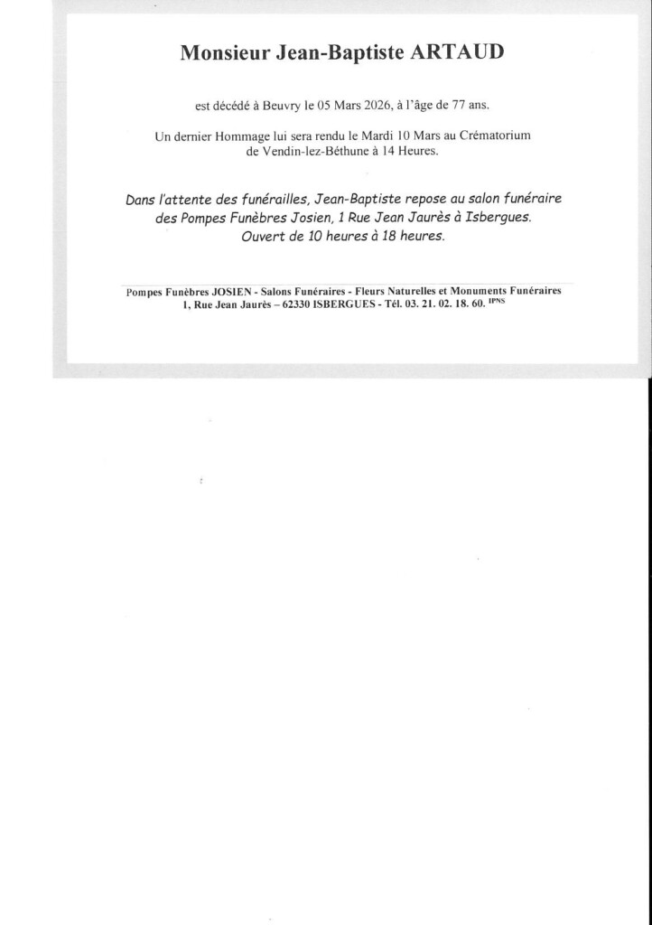 Monsieur Jean-Baptiste ARTAUD (Béthune)